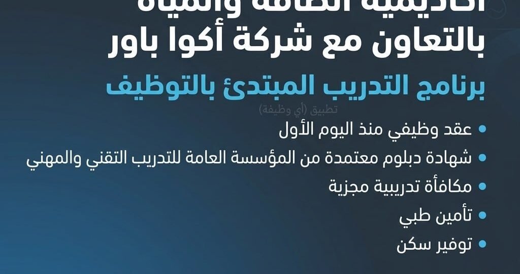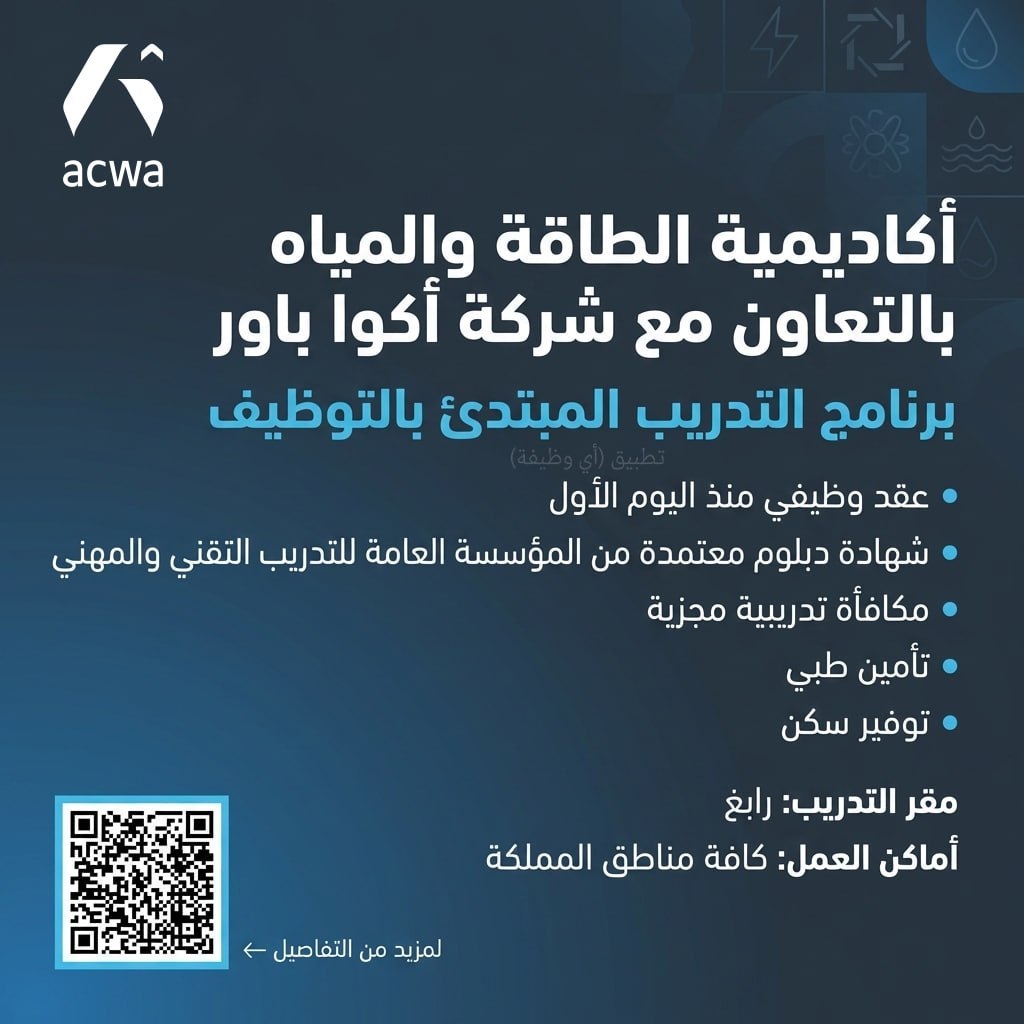 ✅ شركة أكوا باور بالتعاون مع أكاديمية الطاقة والمياه تعلن (برنامج تدريب مبتدئ بالتوظيف) في كافة مناطق المملكة (للجنسين):