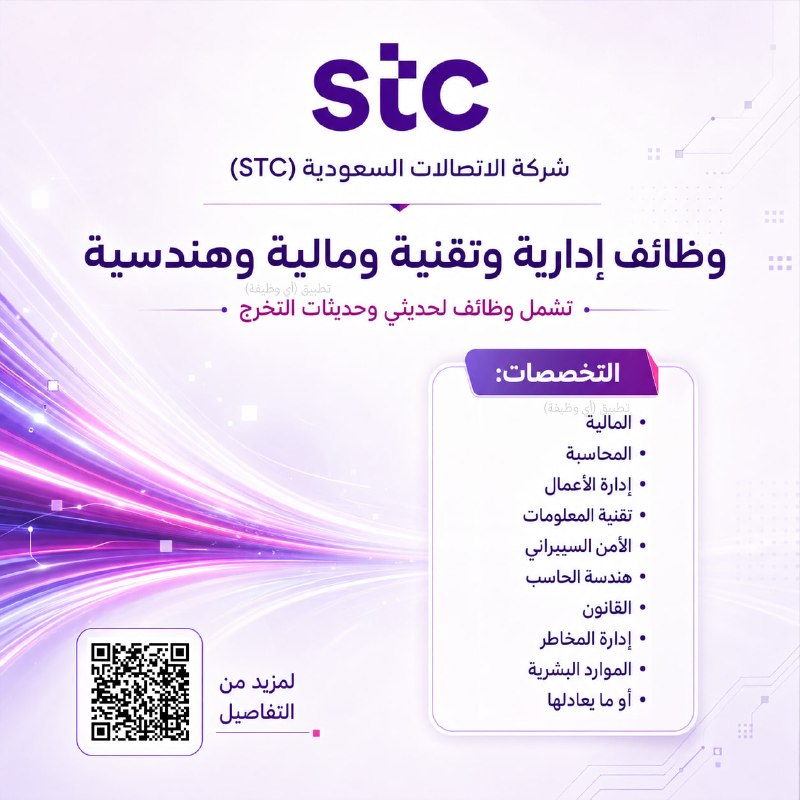 (🔴) الاتصالات السعودية (STC) تعلن وظائف شاغرة في مختلف التخصصات (تشمل وظائف لحديثي التخرج):