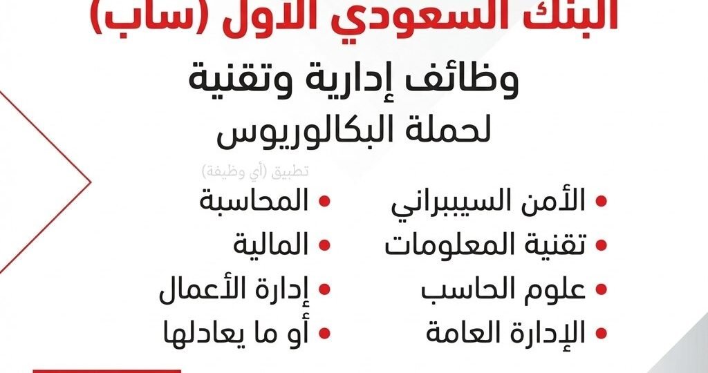 (🔴) البنك السعودي الأول ساب (وظائف إدارية وتقنية) بالرياض: