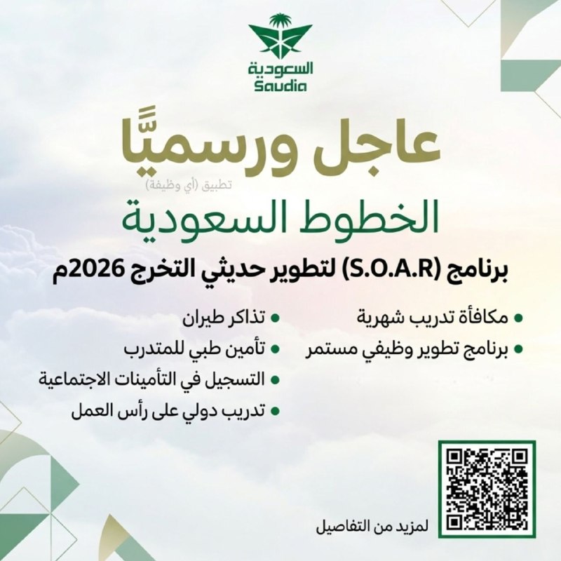 (🔴) الخطوط السعودية تعلن بدء التقديم في برنامج (SOAR) لتطوير حديثي التخرج (نسخة ٢٠٢٦م):