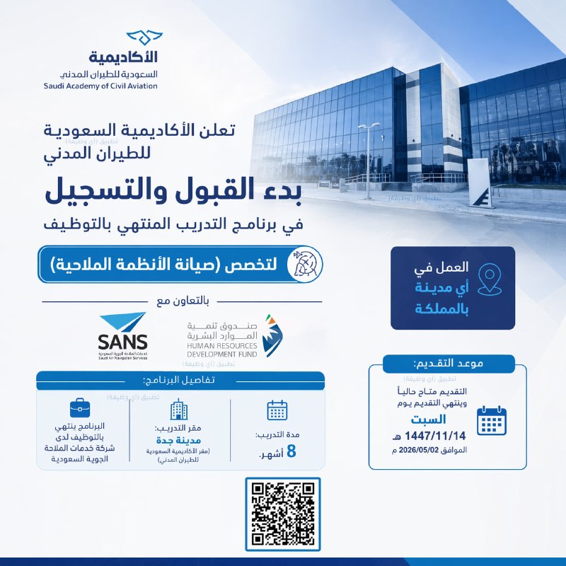 🔴 (العمل في أي مدينة بالمملكة) الأكاديمية السعودية للطيران (صيانة الأنظمة الملاحية) تدريب منتهي بالتوظيف: