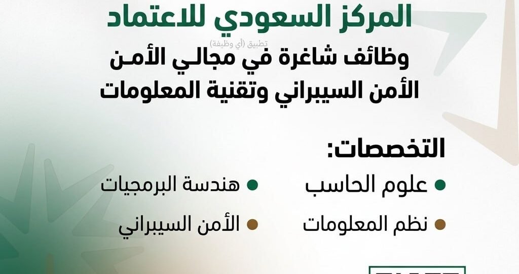(🔴) المركز السعودي للاعتماد يعلن وظائف شاغرة (لحملة البكالوريوس) بالرياض: