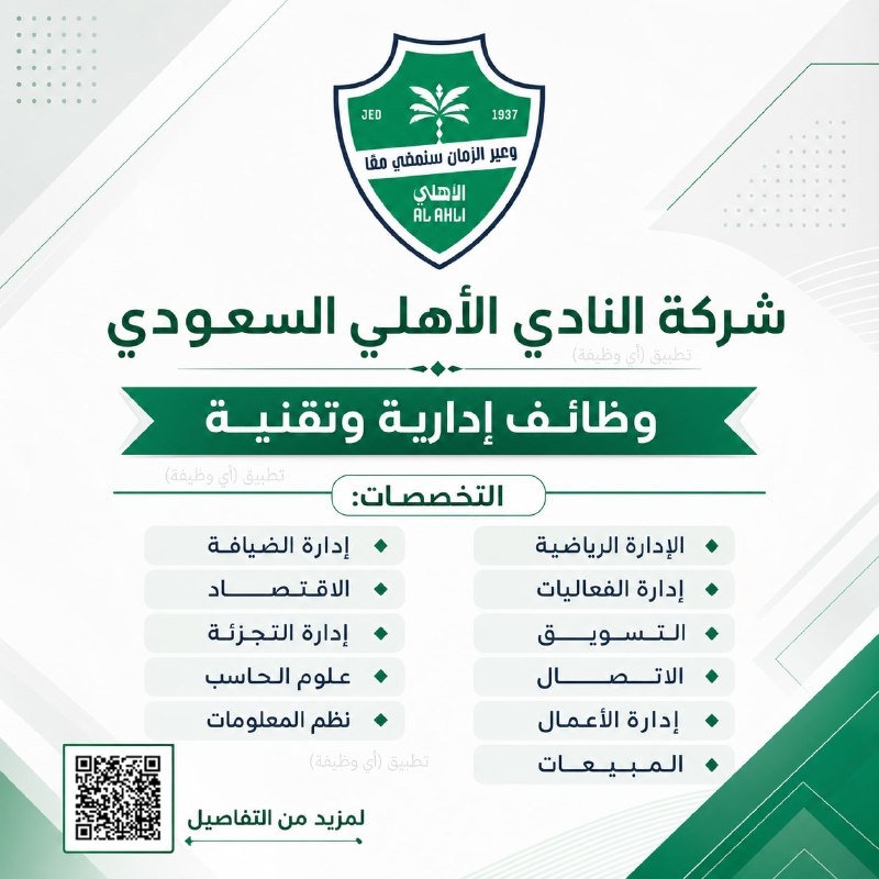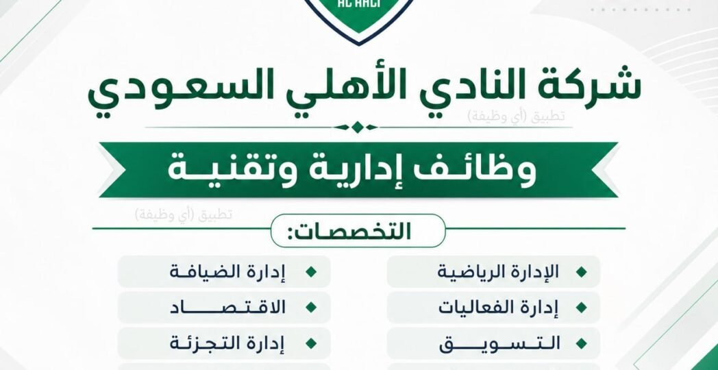 (🔴) النادي الأهلي السعودي يعلن وظائف في التخصصات (الإدارية والتقنية) بمحافظة جدة: