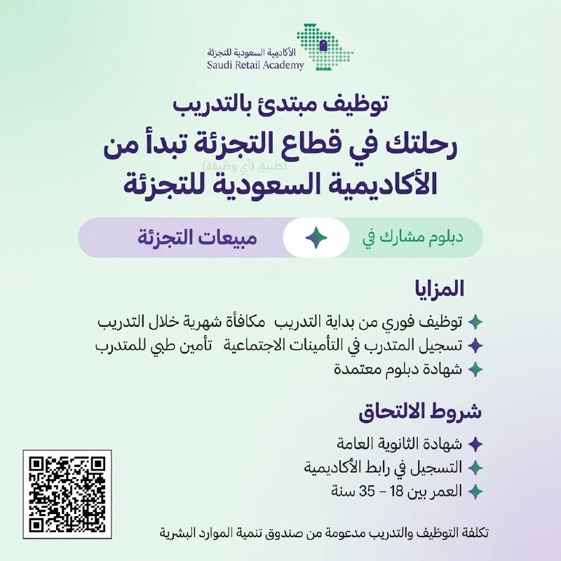 (🔴) برنامج الدبلوم المبتدئ بالتوظيف (لحملة الثانوية العامة) مقدم من (الأكاديمية السعودية للتجزئة):