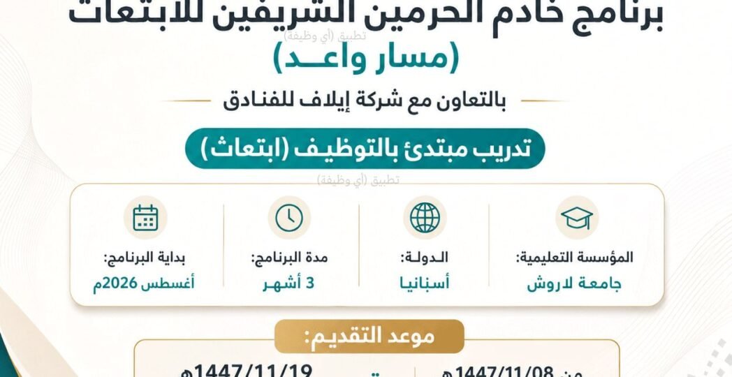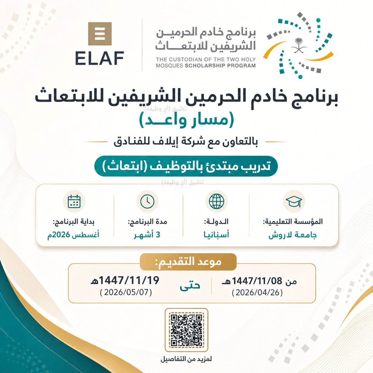 (🔴) برنامج خادم الحرمين للابتعاث يعلن (ابتعاث مبتدئ بالتوظيف) في شركة إيلاف للفنادق: