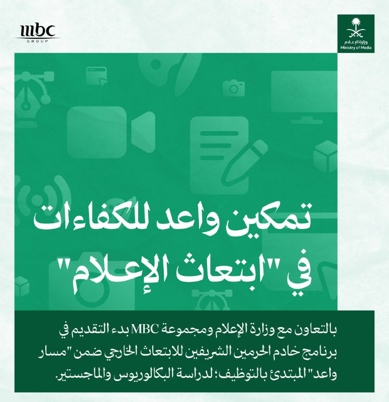 (🔴) برنامج خادم الحرمين للابتعاث يعلن (ابتعاث مبتدئ بالتوظيف) في مجموعة (MBC) لحملة الثانوية فأعلى: