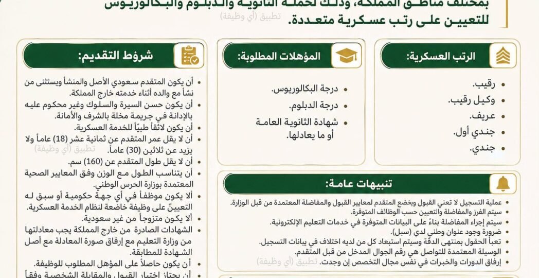(🔴) تجنيد (الحرس الوطني) للرجال بمختلف مناطق المملكة (التقديم مُتاح حاليًا ✅):