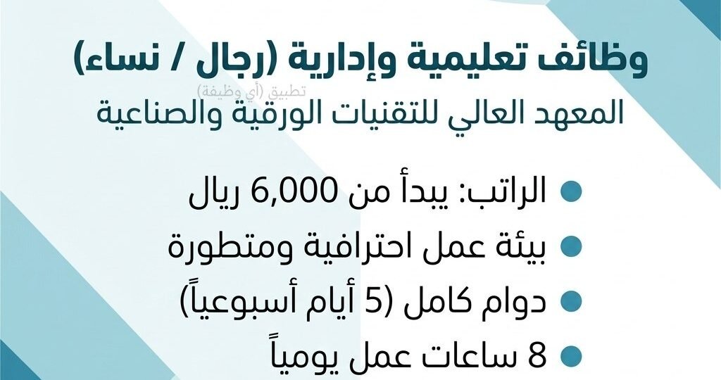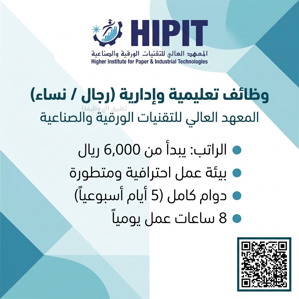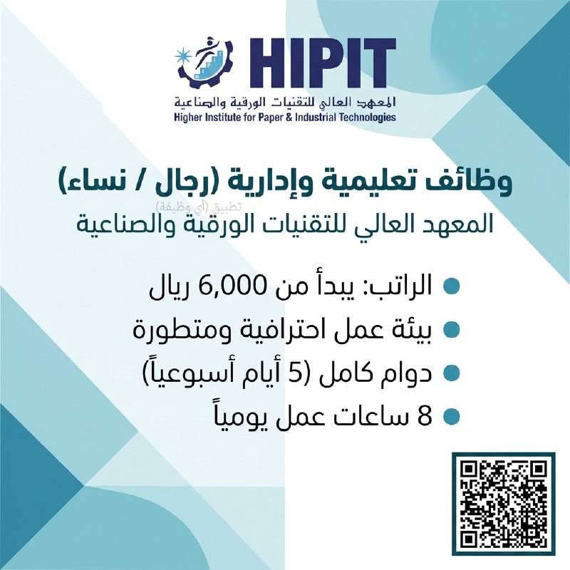 (🔴) توظيف فوري (رواتب تبدأ من ٦,٠٠٠ ريال) لدى (المعهد العالي للتقنيات الورقية):