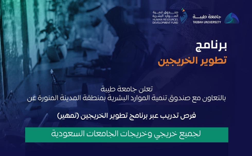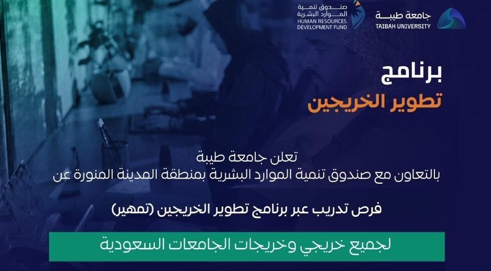 (🔴) جامعة طيبة بالتعاون مع (هدف) بمنطقة المدينة المنورة تعلن فرص تدريب عبر برنامج تطوير الخريجين تمهير لجميع خريجي وخريجات الجامعات السعودية