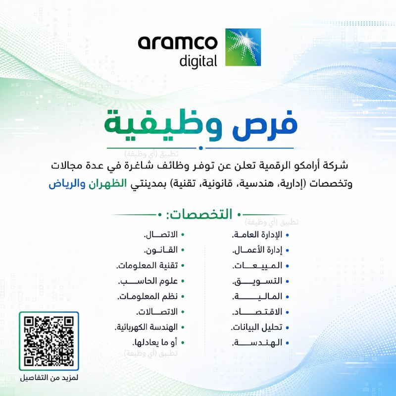 (🔴) شركة أرامكو الرقمية (وظائف إدارية وهندسية وقانونية وتقنية):