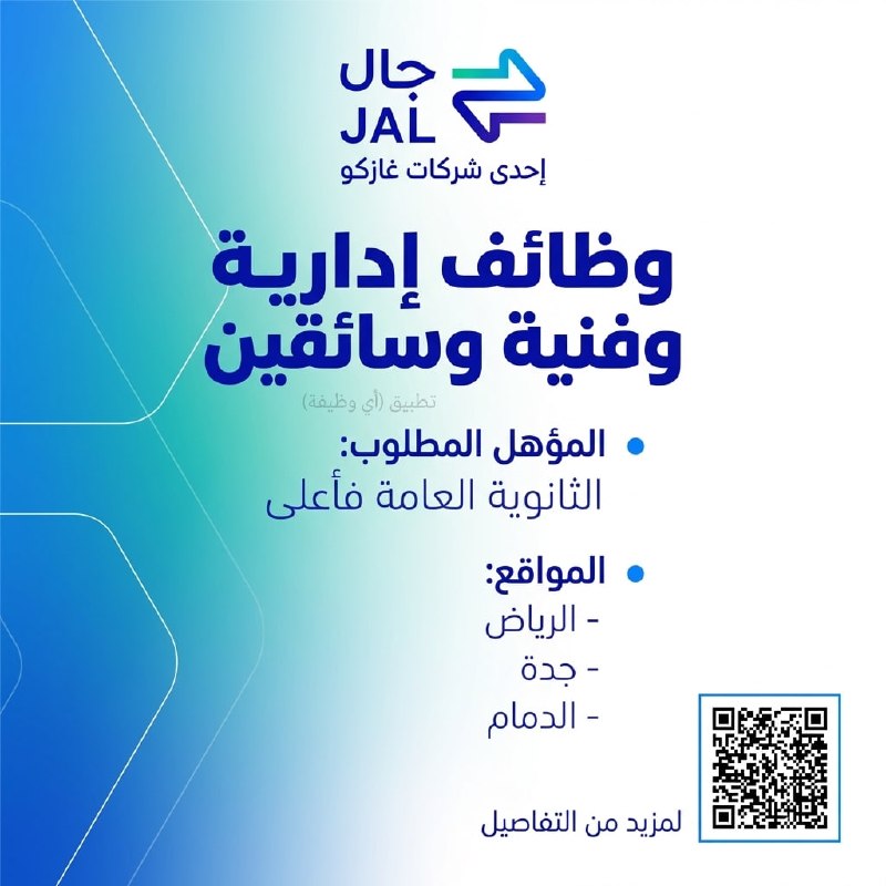 (🔴) شركة جال (إحدى شركات غازكو) تعلن وظائف (إدارية وفنية وسائقين) في عدة مدن بالمملكة:
