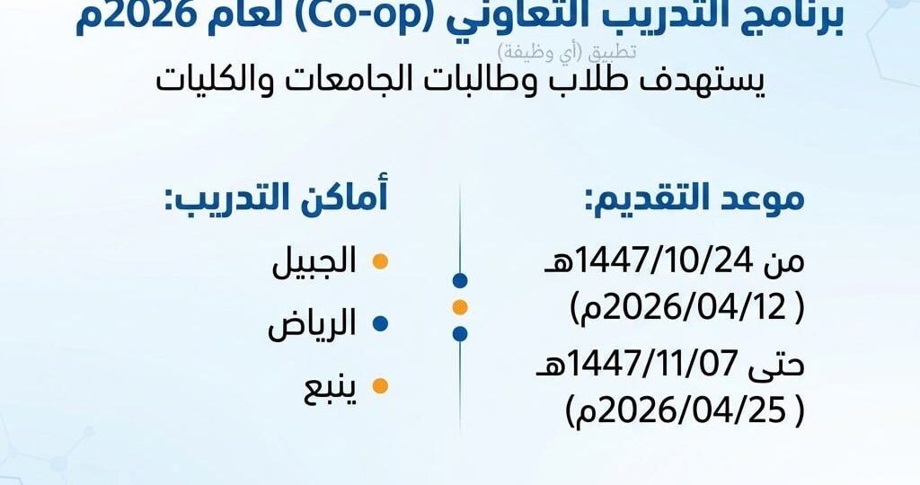 📍 أماكن التدريب: (الرياض – الجبيل – ينبع).