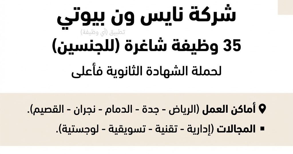 (🔴) شركة نايس ون (٣٥ وظيفة شاغرة) للجنسين في عدة مدن بالمملكة: