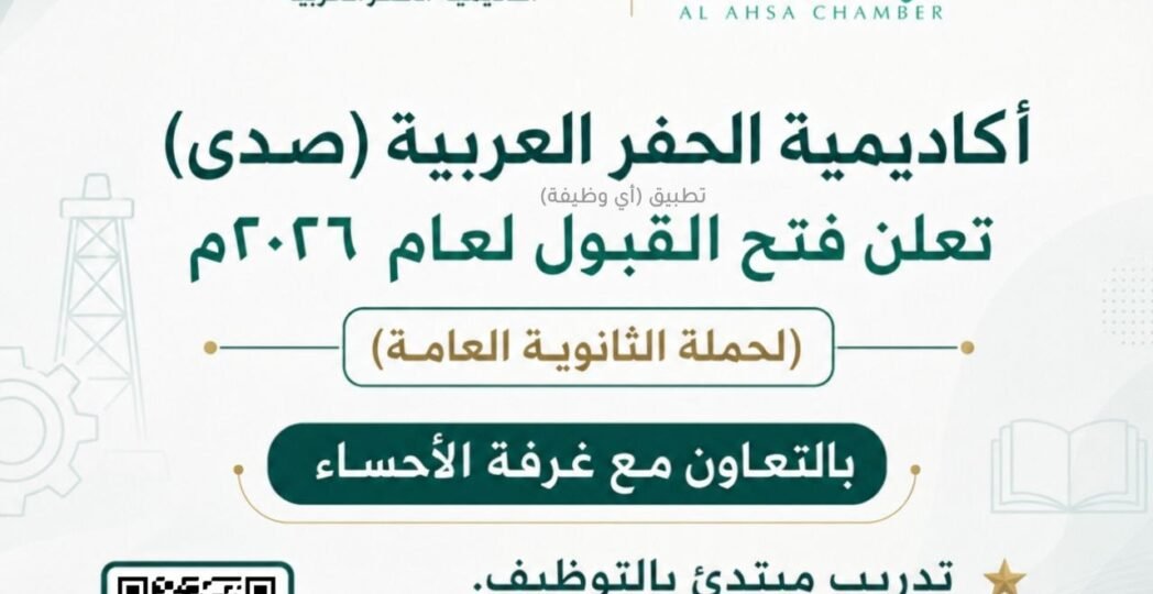 (🔴) عاجل | أكاديمية الحفر العربية (صدى) تعلن فتح القبول لعام ٢٠٢٦م (لحملة الثانوية العامة) بالتعاون مع غرفة الأحساء: