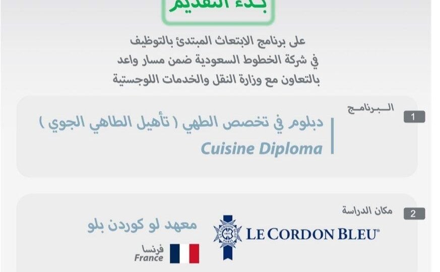 (🔴) عاجل | الخطوط السعودية تعلن برنامج (الابتعاث المبتدئ بالتوظيف) لتأهيل (الطاهي الجوي) للدراسة في فرنسا: