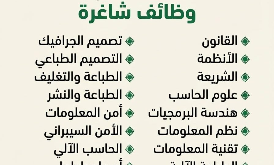 ⭐️ التخصصات (القانون، الأنظمة، الشريعة، الحاسب، الأمن السيبراني، هندسة البرمجيات، الطباعة، تصميم الجرافيك) وغيرها.