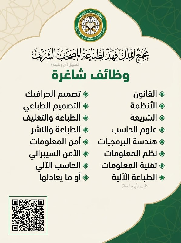 (🔴) عاجل | مجمع الملك فهد لطباعة المصحف الشريف (وظائف شاغرة) بالمدينة المنورة عبر (جدارات) للجنسين: