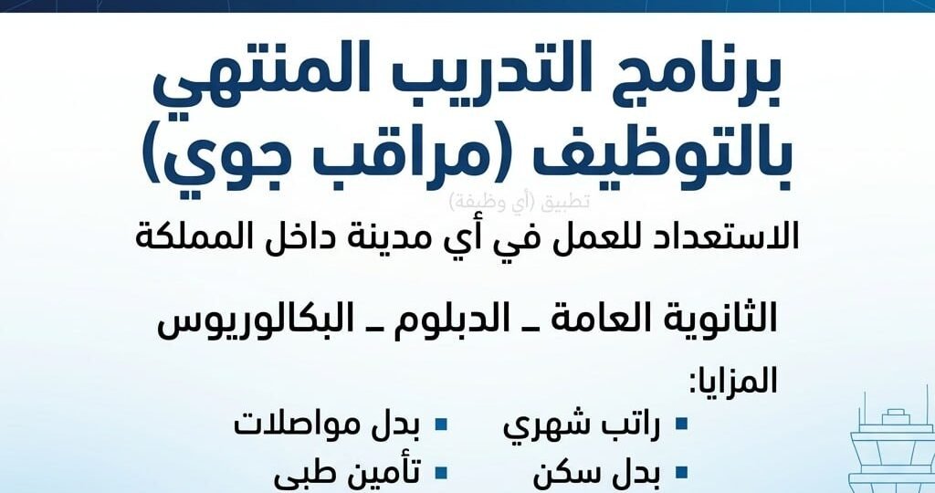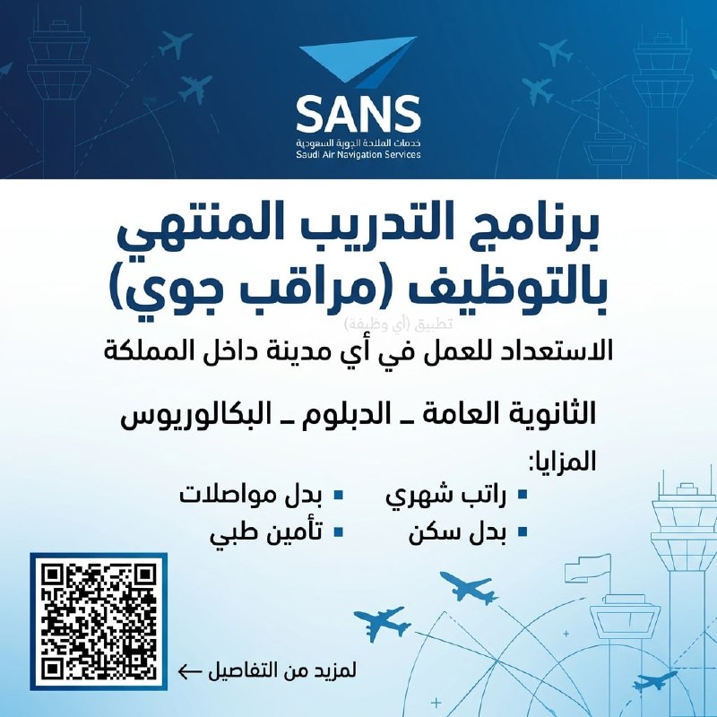 (🔴) عاجل (مراقب/ـة جوي/ـة) تعلن فتح باب التقديم في برنامج (مراقب جوي) المنتهي بالتوظيف (للجنسين) مع الاستعداد للعمل في أي مدينة داخل المملكة (الملاحة الجوّية