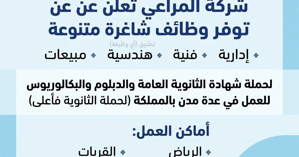 (🔴) فتح التوظيف لدى (شركة المراعي):📘 المؤهلات (الثانوية – الدبلوم – البكالوريوس).