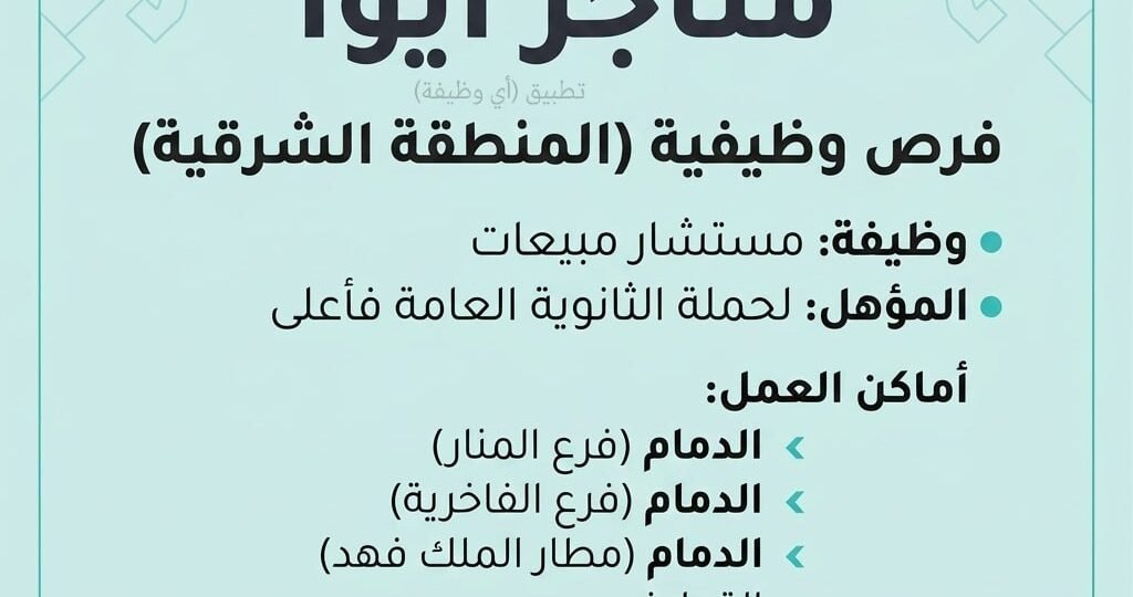 (🔴) متاجر آيوا تعلن فتح التوظيف (ثانوية فأعلى) في (الدمام والقطيف):