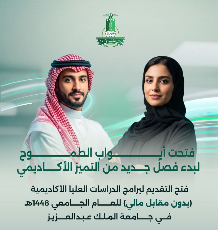 🔴 | (مجاناً ✅ بدأ التقديم الآن) جامعة الملك عبدالعزيز تعلن فتح باب التقديم على برامج الدراسات العليا الأكاديمية للعام الجامعي ١٤٤٨هـ