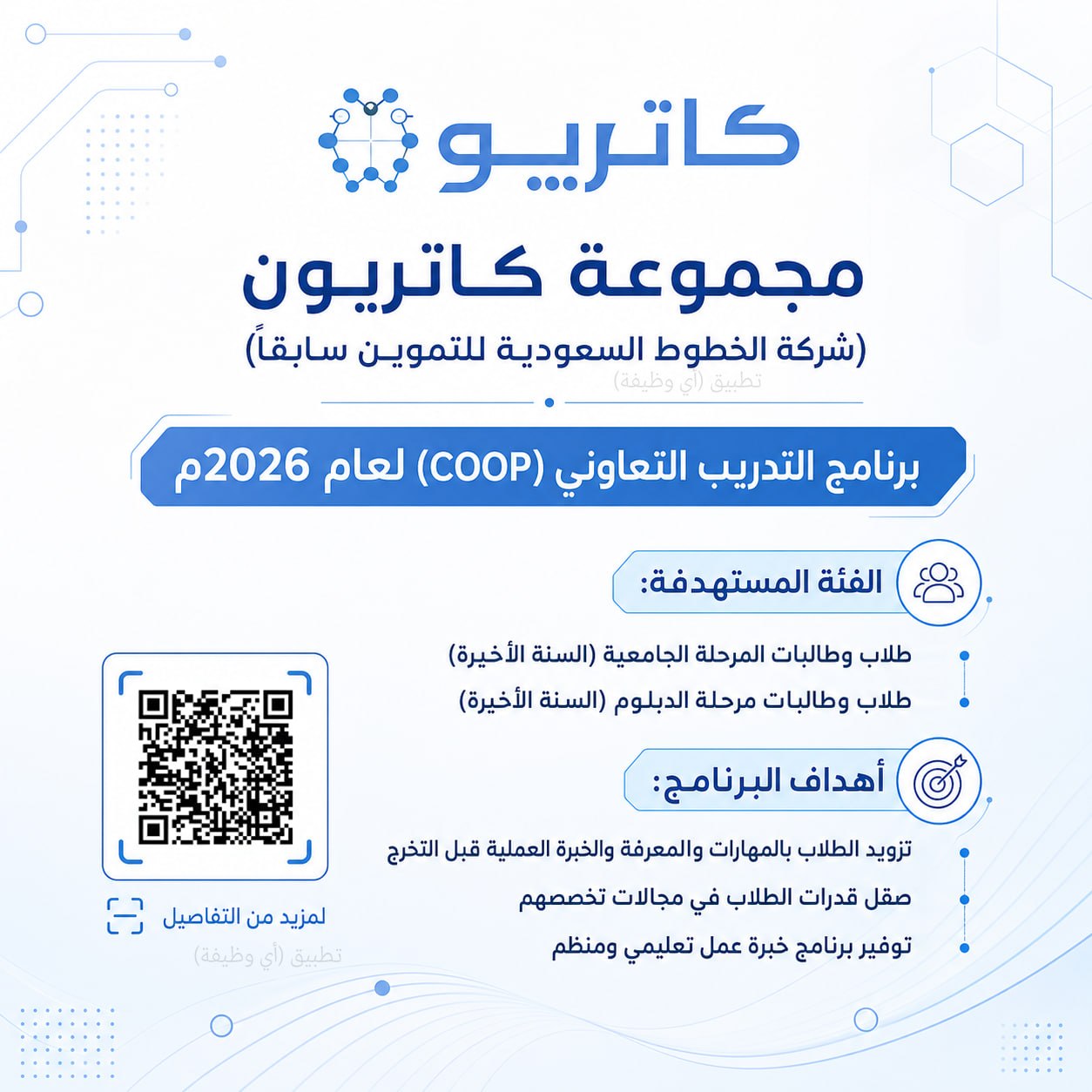 (🔴) مجموعة كاتريون (الخطوط السعودية للتموين سابقاً) تعلن بدء التقديم في برنامج (التدريب التعاوني):