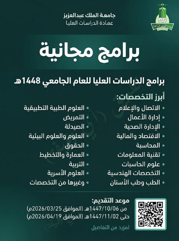 🔴 هام (مجانًا) بدأ التقديم الآن ✅ جامعة الملك عبدالعزيز (الدراسات العليا الأكاديمية) للجنسين: