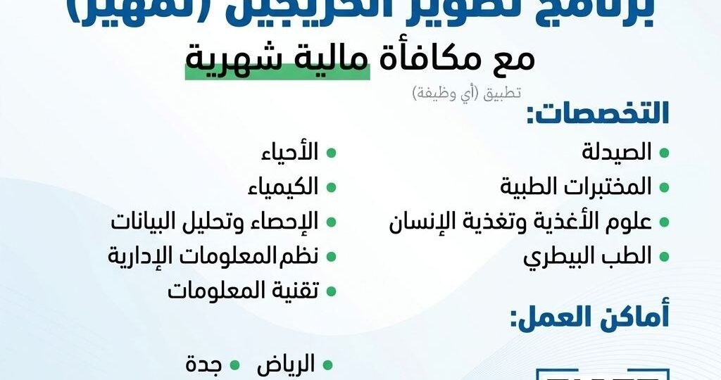 (🔴) هيئة الغذاء والدواء (تعلن بدء التقديم على برنامج تطوير الخريجين – تمهير) مع مكافأة شهرية: