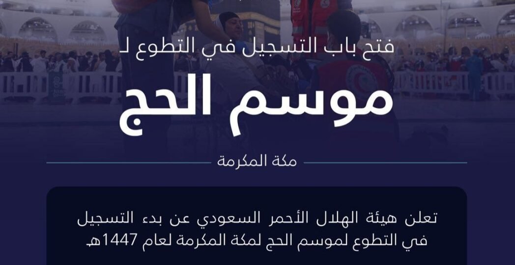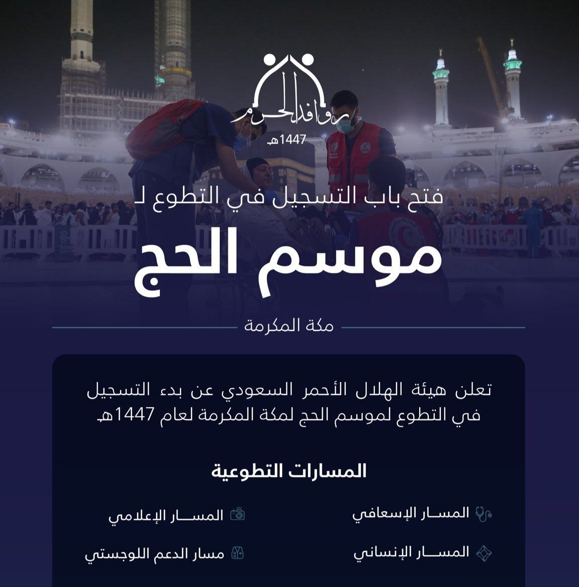 (🔴) هيئة الهلال الأحمر السعودي تعلن (بدء التسجيل في التطوّع لموسم الحج ١٤٤٧هـ):