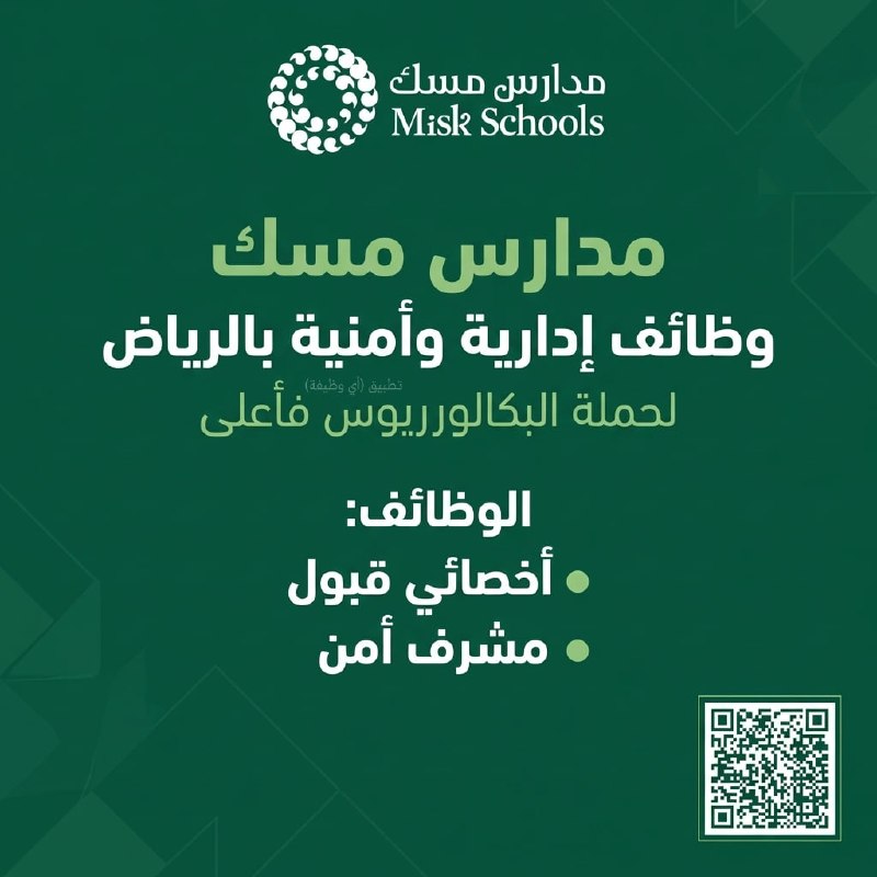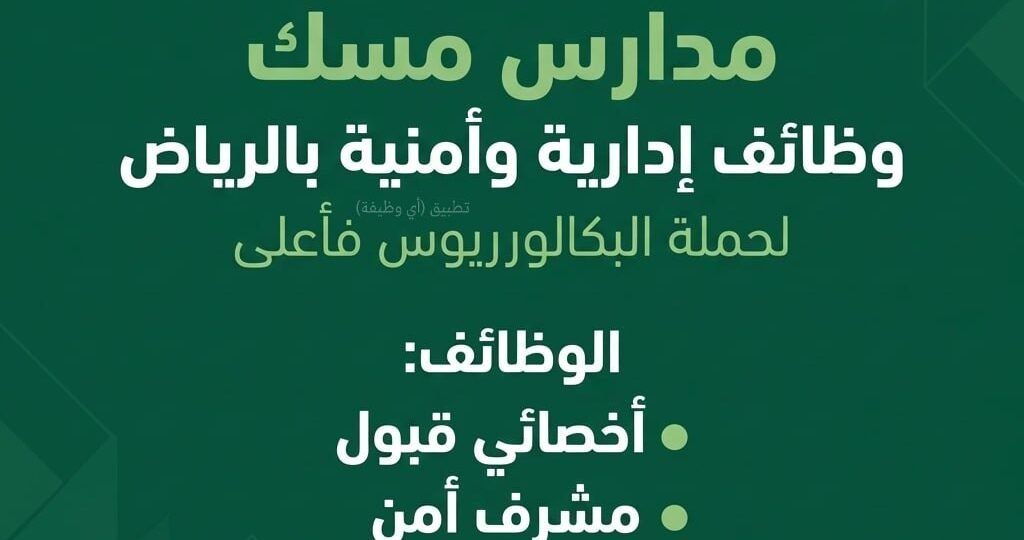 (🔴) وظائف إدارية وأمنية لدى (مدارس مسك) بالرياض: