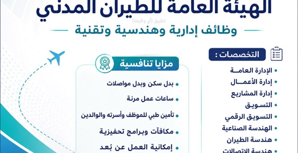 (🔴) وظائف (الطيران المدني) إدارية وهندسية وتقنية: