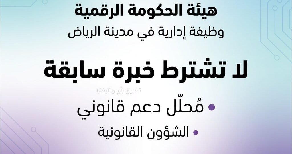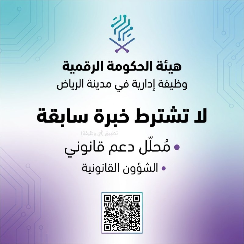 (🔴) وظيفة قانونية (لا تشترط خبرة) لدى هيئة الحكومة الرقمية بالرياض: