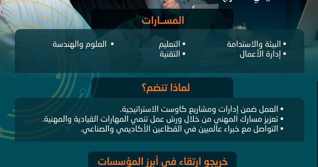 جامعة الملك عبدالله للعلوم والتقنية (كاوست) تعلن عن برنامج كاوست (إرتقاء) للتدريب على رأس العمل (رجال ونساء)