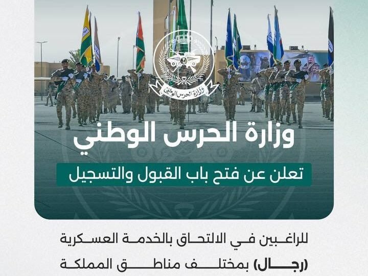 🟥 |عاجل ورسمياً – وزارة الحرس الوطني تعلن فتح باب القبول والتسجيل للراغبين في الالتحاق بالخدمة العسكرية في مختلف مناطق المملكة (تجنيد – رجال)