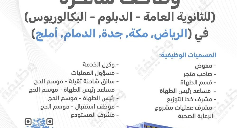 🟩 وظائف شاغرة لحملة (الثانوية /الدبلوم / البكالوريوس)