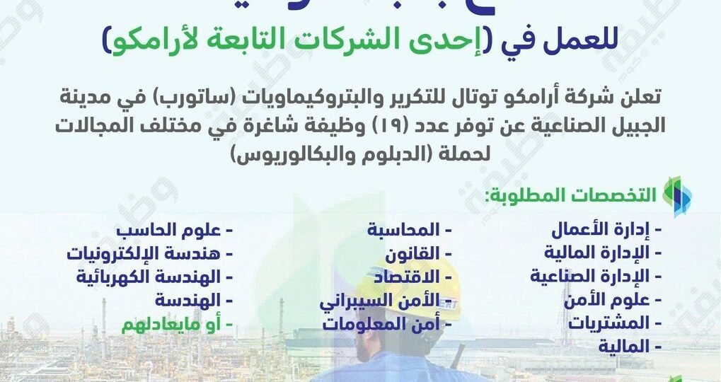 (🔴) وظائف (أرامكو توتال – ساتورب) في مختلف التخصصات:💎 راتب أساسي مجزي.